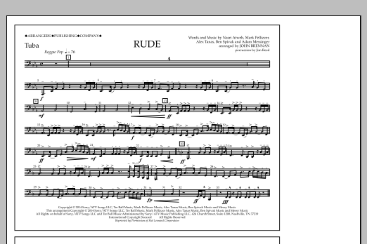 Download or print John Brennan Rude - Tuba sheet music, chords and digital score arranged for Marching Band. This Pop score includes 1 page(s).