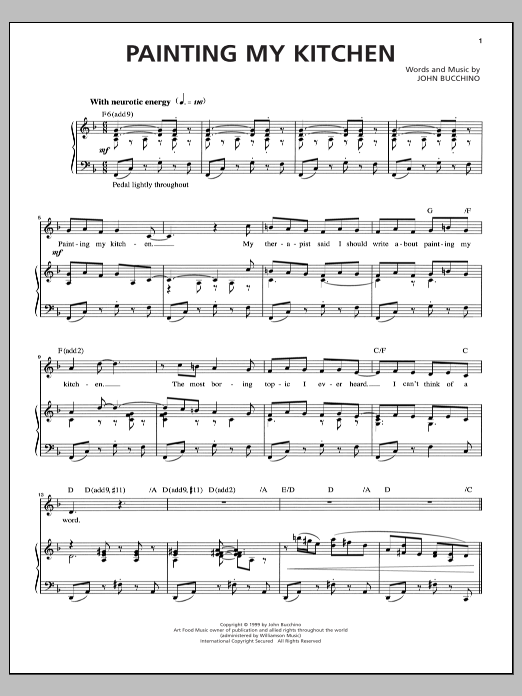 Download or print John Bucchino Painting My Kitchen sheet music, chords and digital score arranged for Piano & Vocal. This Musical/Show score includes 13 page(s).