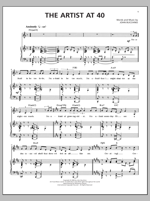 Download or print John Bucchino The Artist At 40 sheet music, chords and digital score arranged for Piano & Vocal. This Musical/Show score includes 9 page(s).