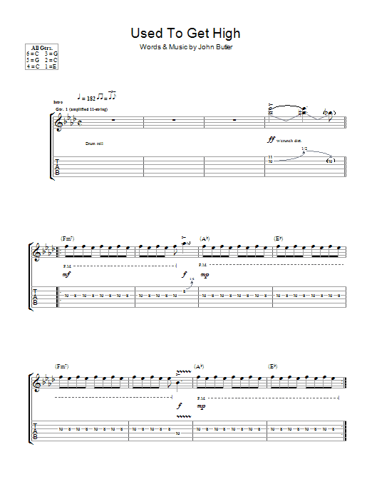 Download or print John Butler Used To Get High sheet music, chords and digital score arranged for Guitar Tab. This Rock score includes 10 page(s).