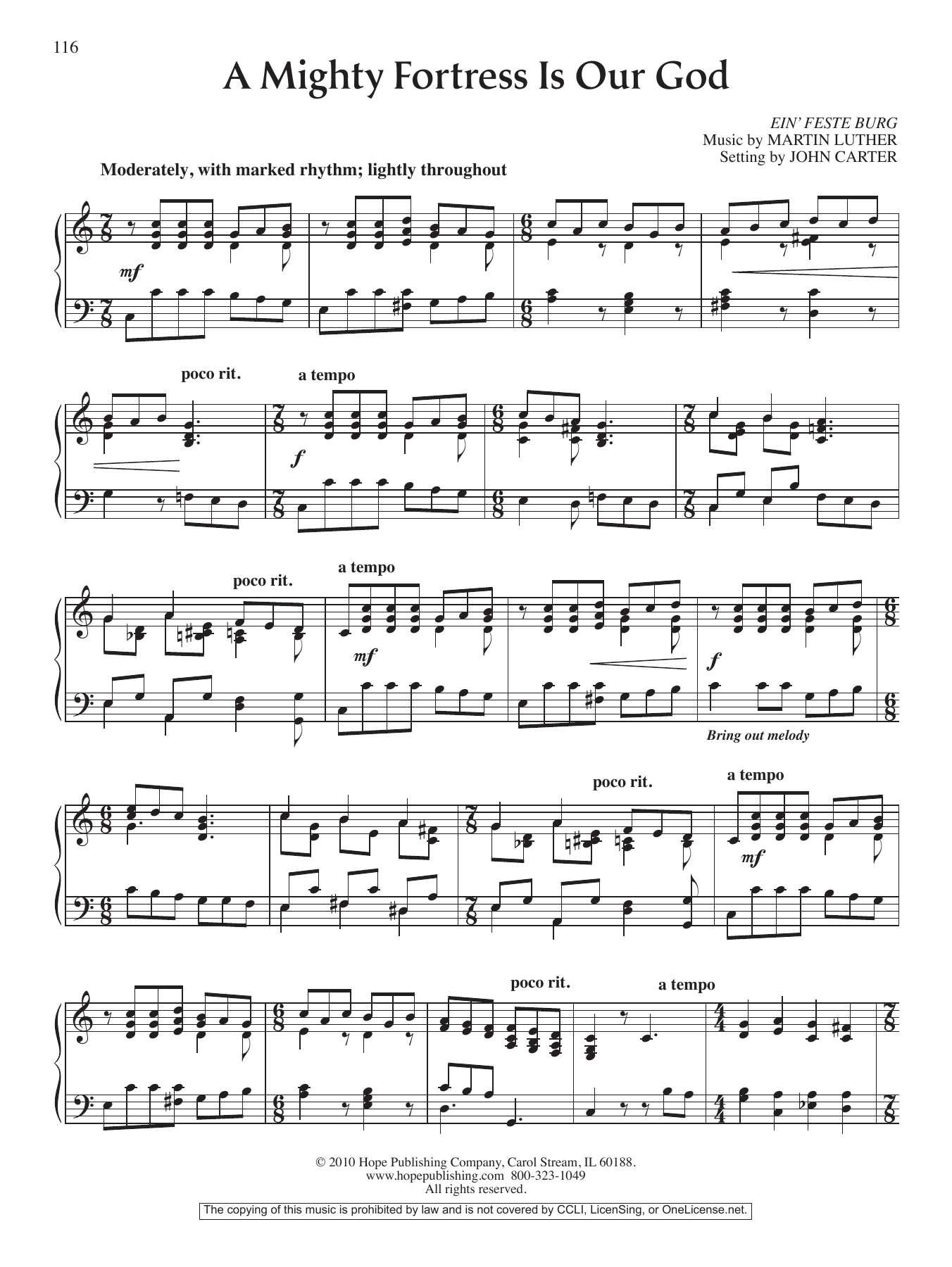 Download or print John Carter A Mighty Fortress Is Our God sheet music, chords and digital score arranged for Piano Solo. This Hymn score includes 2 page(s).