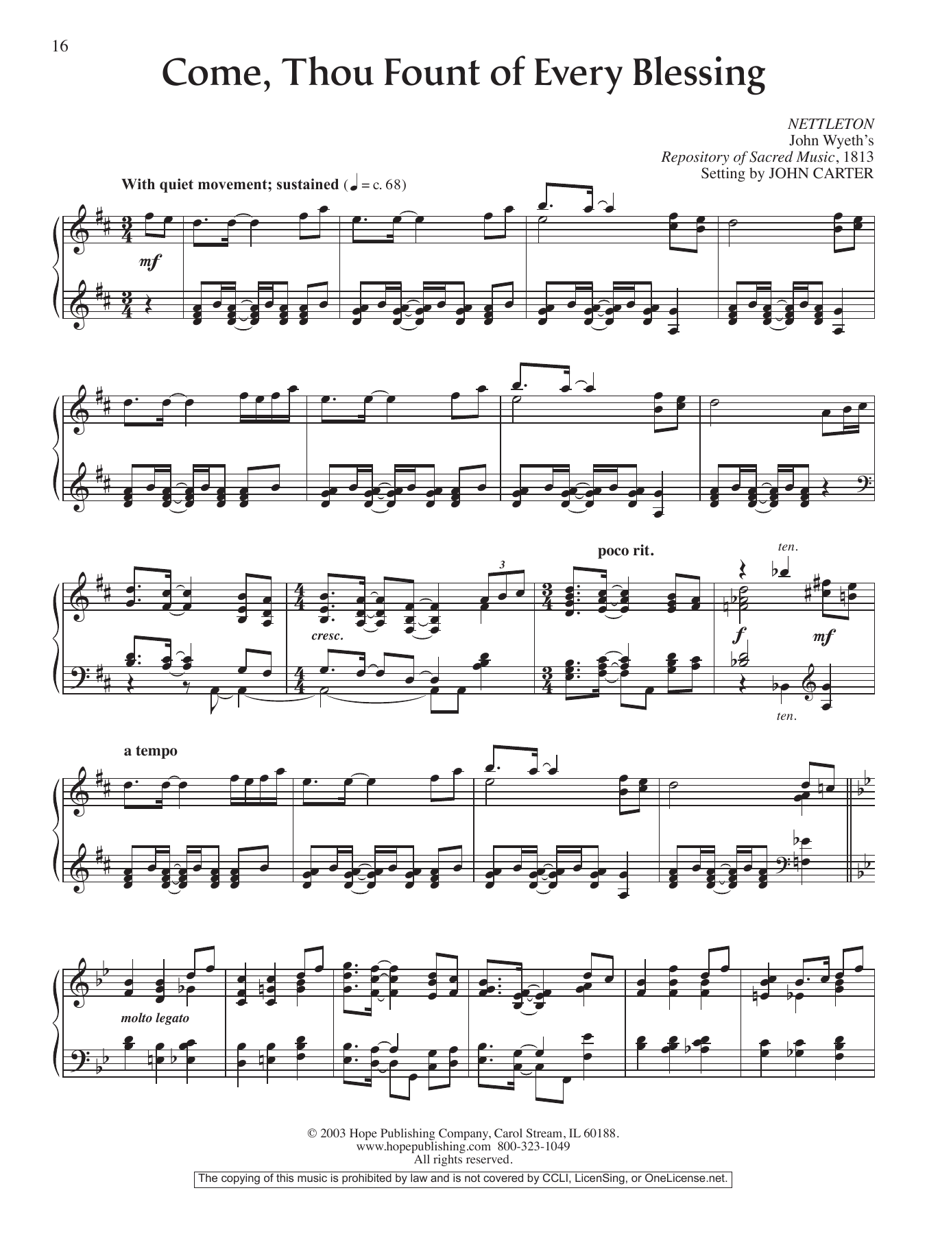 Download or print John Carter Come, Thou Fount of Every Blessing sheet music, chords and digital score arranged for Piano Solo. This Hymn score includes 2 page(s).