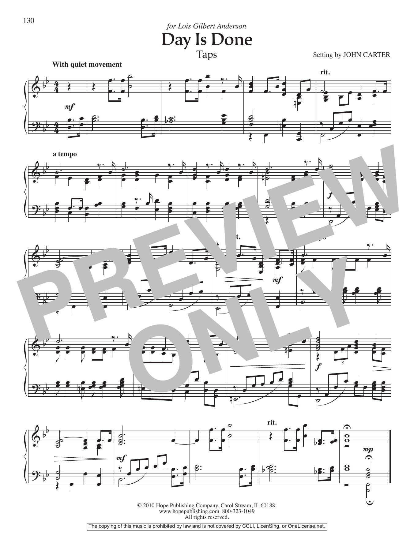 Download or print John Carter Day Is Done (Taps) sheet music, chords and digital score arranged for Piano Solo. This Hymn score includes 1 page(s).