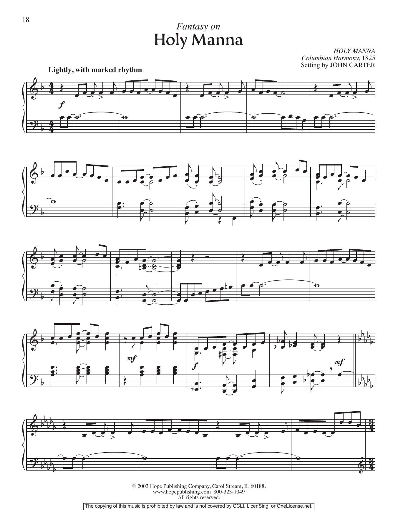 Download or print John Carter Fantasy on Holy Manna sheet music, chords and digital score arranged for Piano Solo. This Hymn score includes 2 page(s).