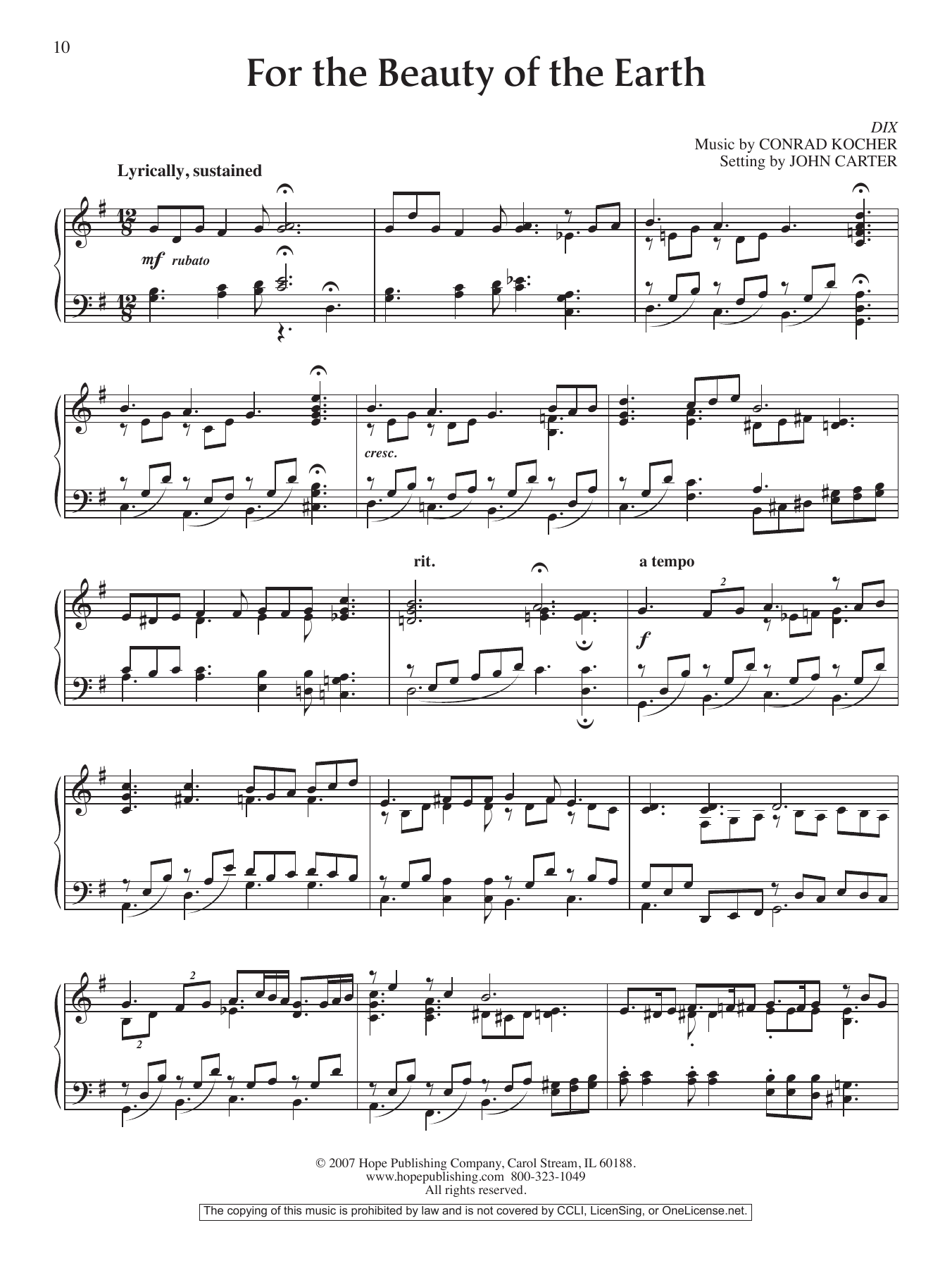 Download or print John Carter For the Beauty of the Earth sheet music, chords and digital score arranged for Piano Solo. This Hymn score includes 2 page(s).