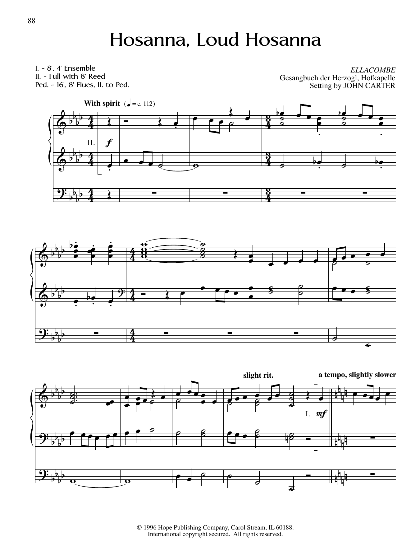 Download or print John Carter Hosanna, Loud Hosanna sheet music, chords and digital score arranged for Organ. This Hymn score includes 3 page(s).