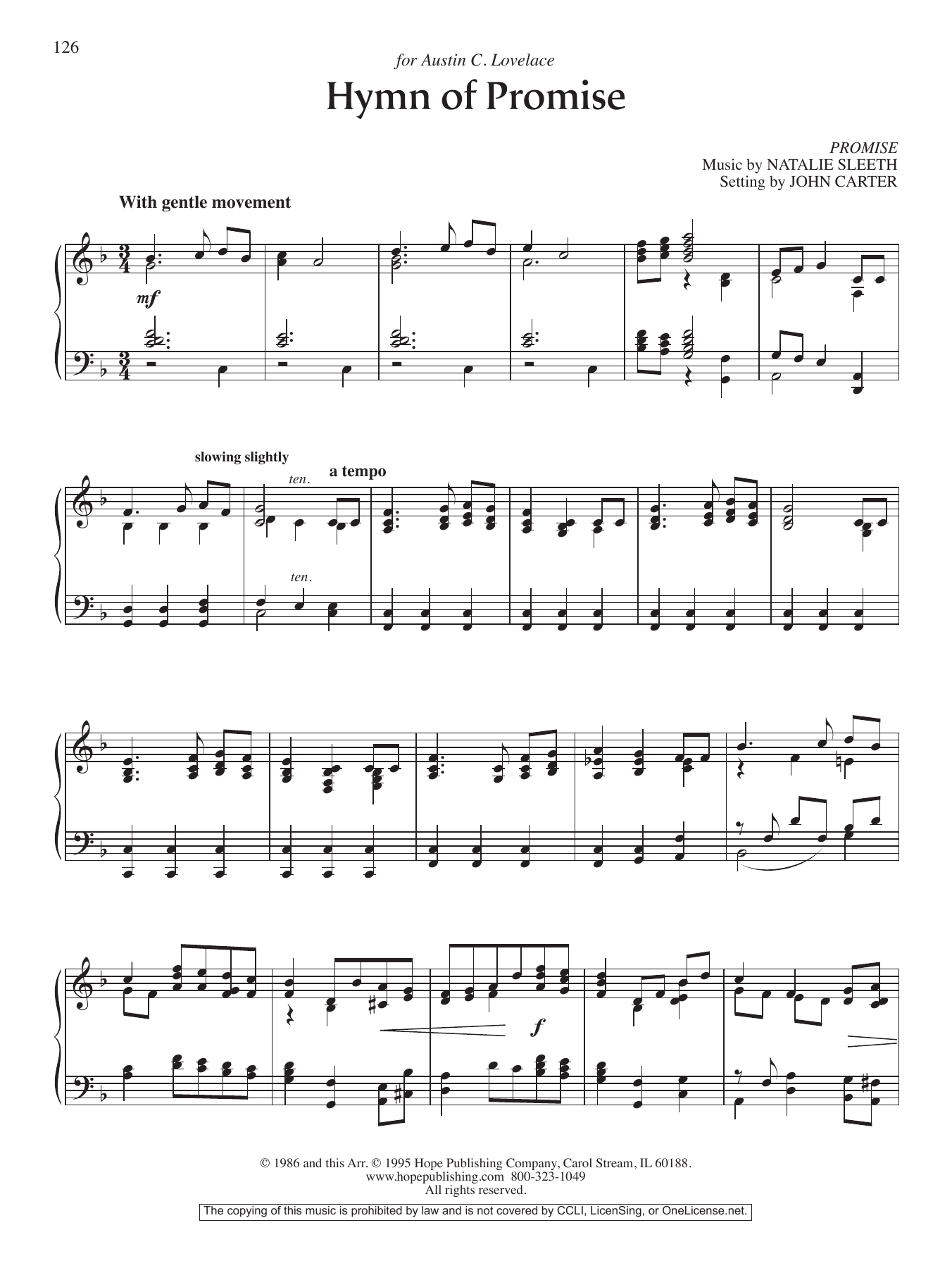 Download or print John Carter Hymn of Promise sheet music, chords and digital score arranged for Piano Solo. This Hymn score includes 2 page(s).