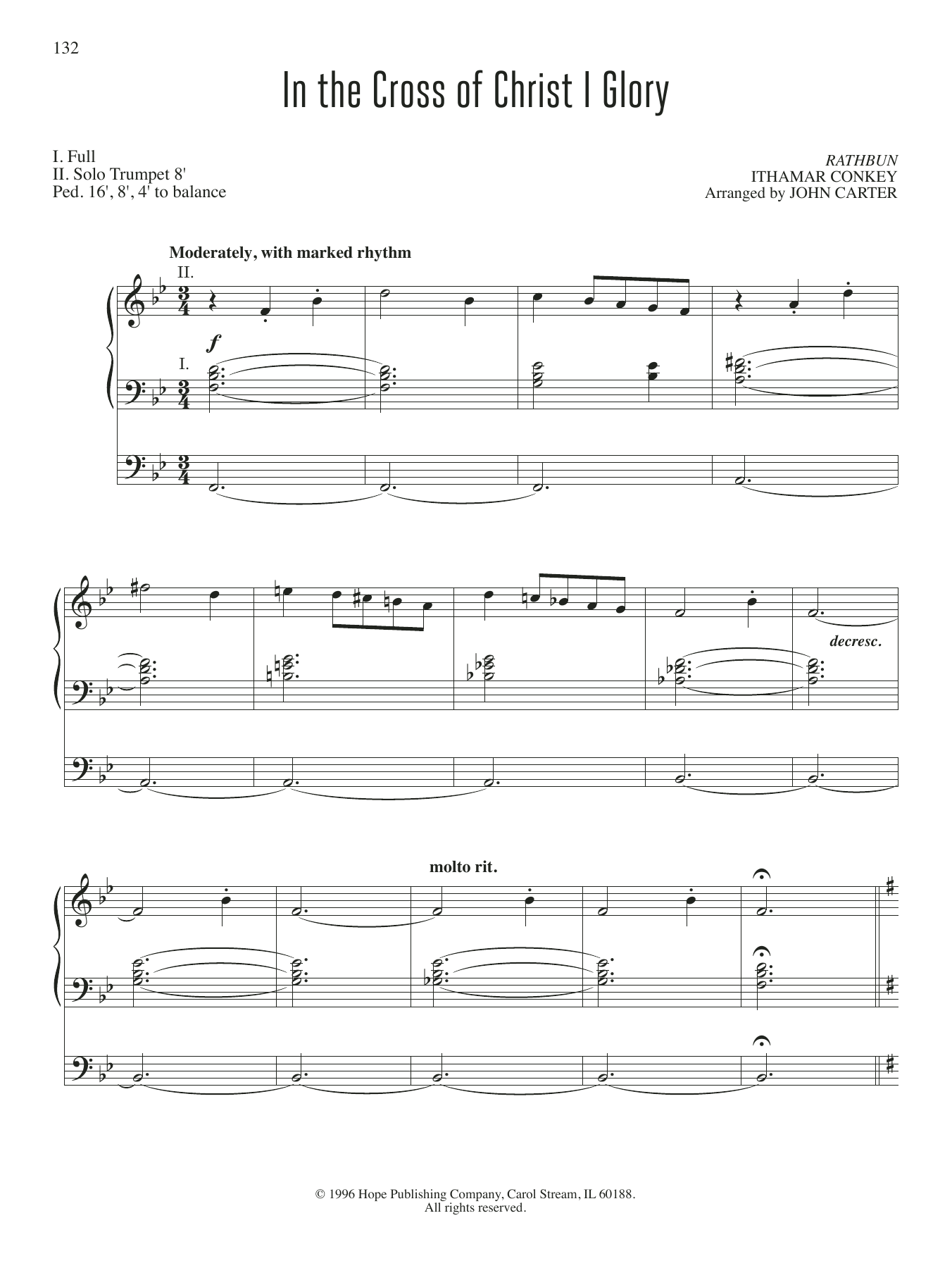 Download or print John Carter In the Cross of Christ I Glory sheet music, chords and digital score arranged for Organ. This Hymn score includes 3 page(s).