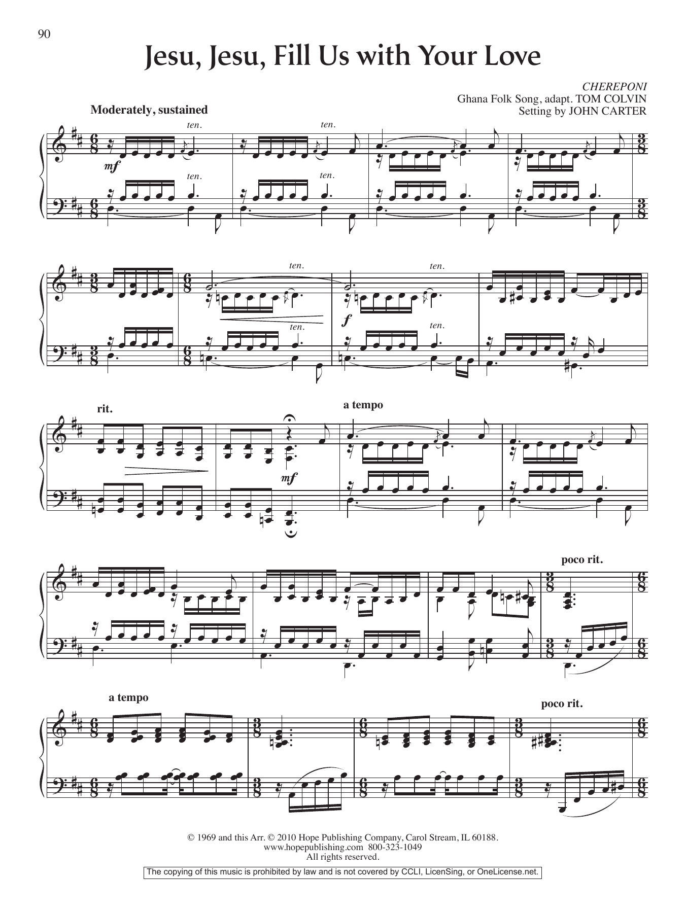 Download or print John Carter Jesu, Jesu, Fill Us with Your Love sheet music, chords and digital score arranged for Piano Solo. This Hymn score includes 2 page(s).