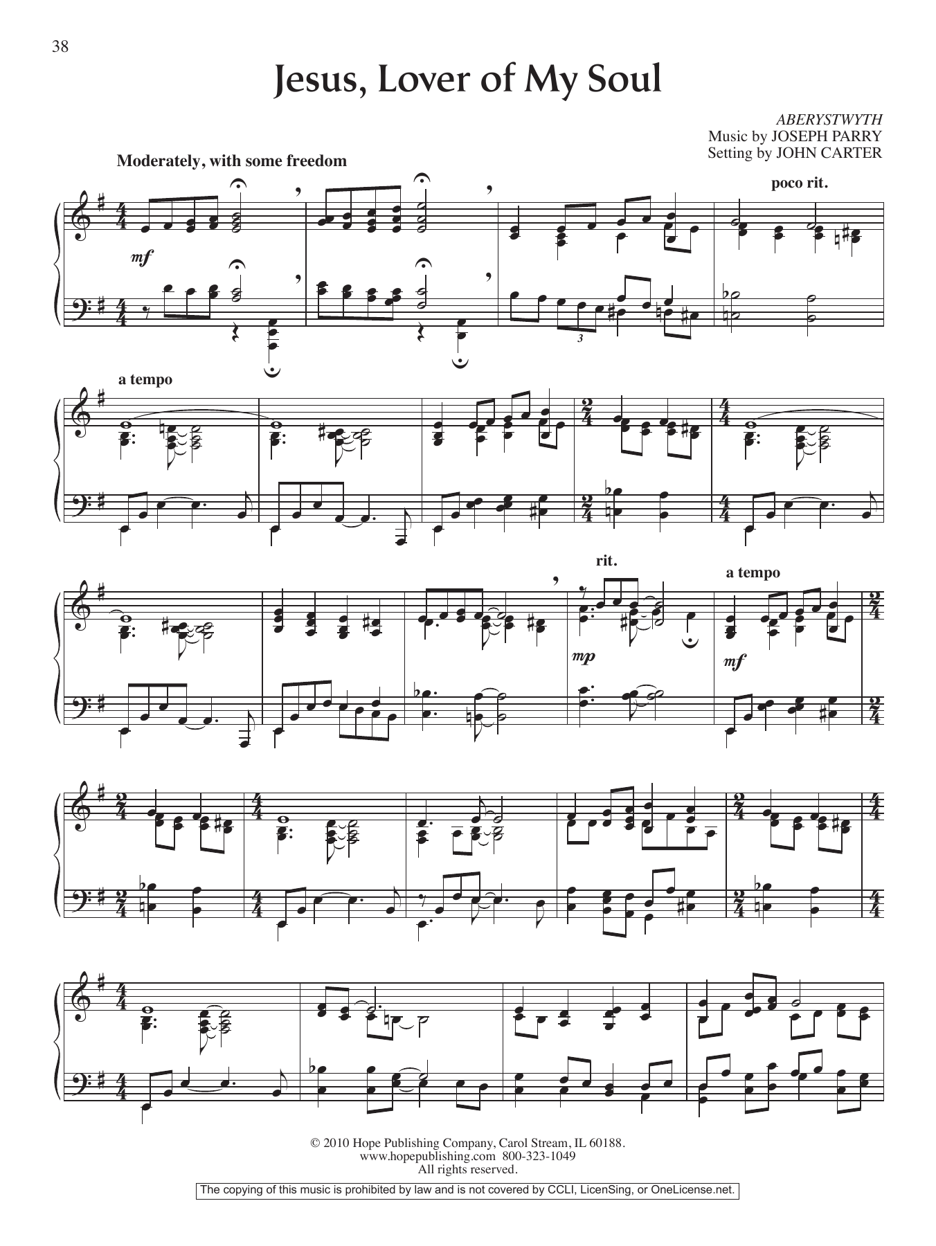 Download or print John Carter Jesus, Lover of My Soul sheet music, chords and digital score arranged for Piano Solo. This Hymn score includes 2 page(s).
