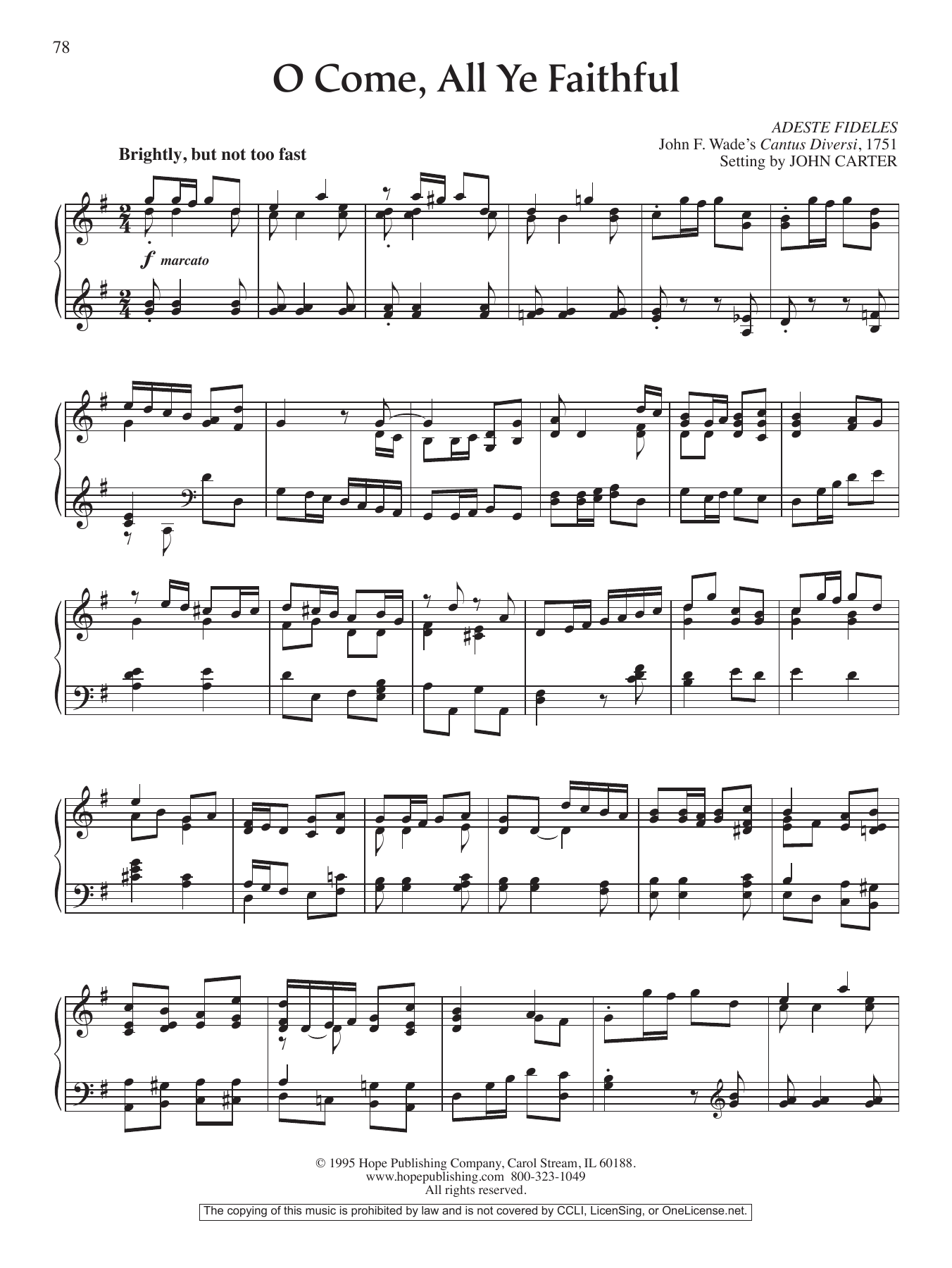 Download or print John Carter O Come, All Ye Faithful sheet music, chords and digital score arranged for Piano Solo. This Hymn score includes 2 page(s).