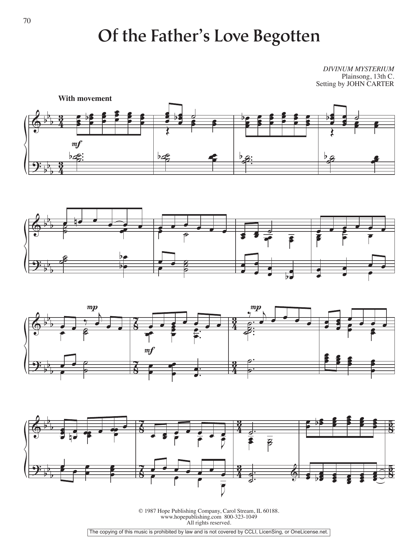 Download or print John Carter Of the Father's Love Begotten sheet music, chords and digital score arranged for Piano Solo. This Hymn score includes 2 page(s).