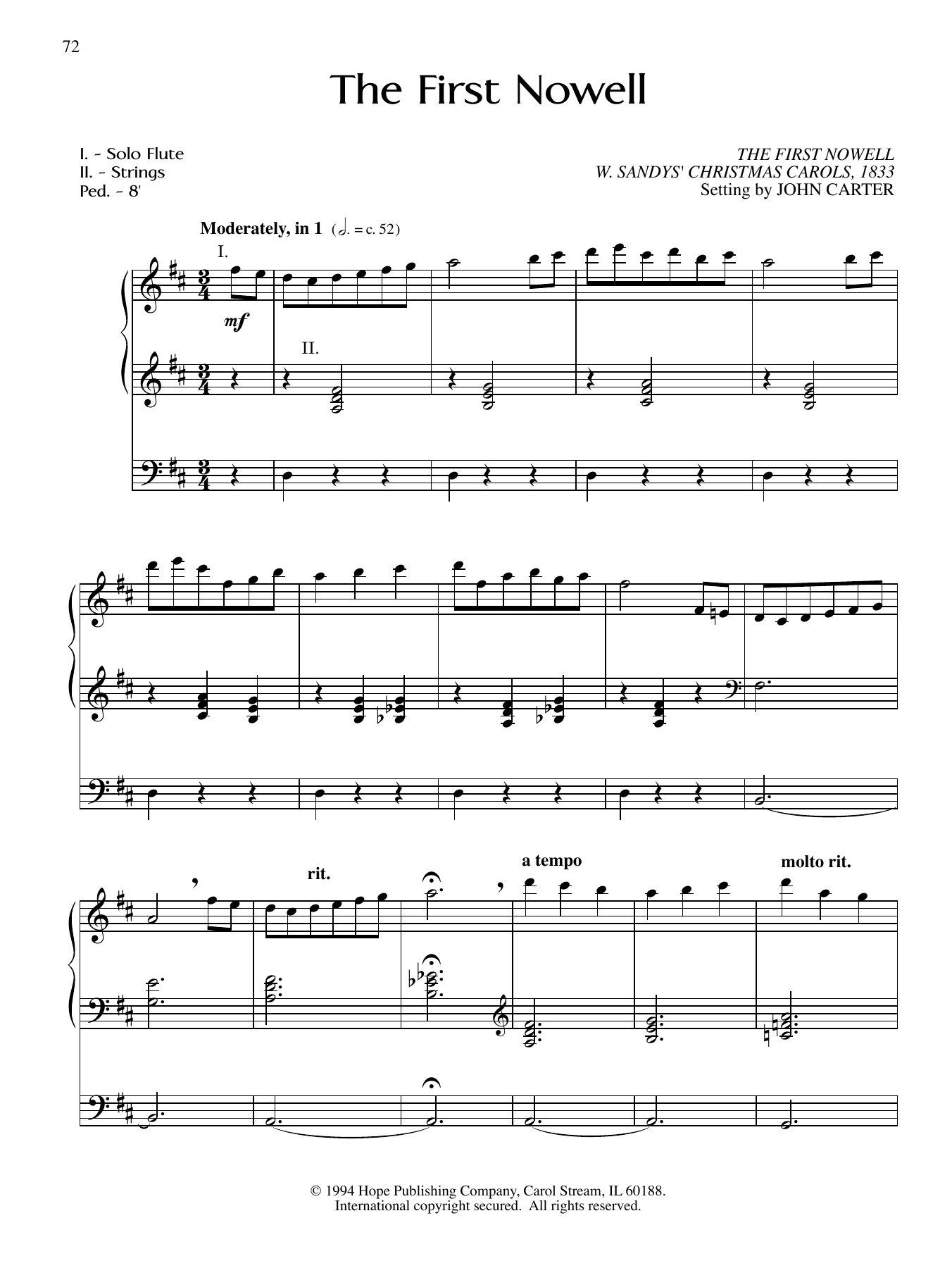 Download or print John Carter The First Nowell sheet music, chords and digital score arranged for Organ. This Hymn score includes 2 page(s).