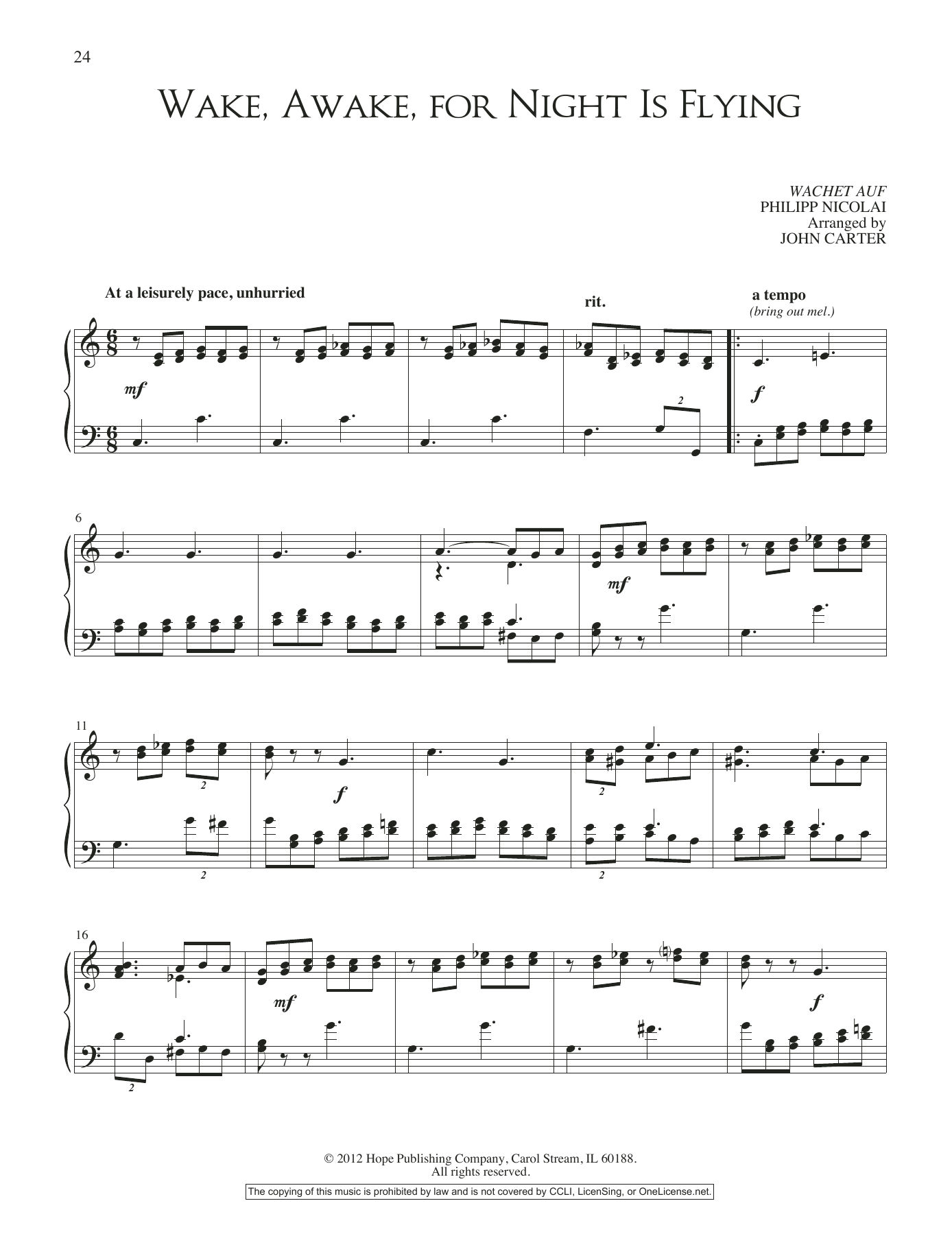 Download or print John Carter Wake, Awake, For Night Is Flying sheet music, chords and digital score arranged for Piano Solo. This Hymn score includes 2 page(s).