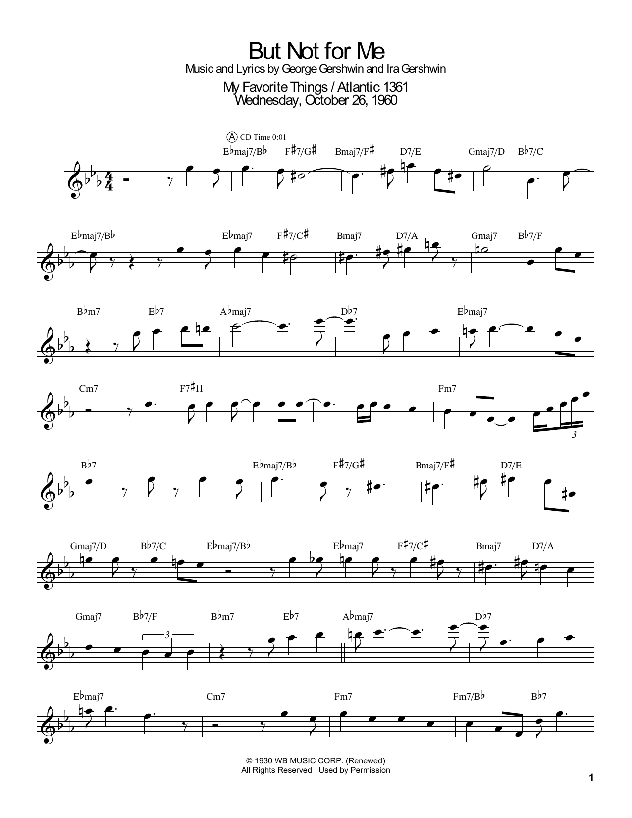 Download or print John Coltrane But Not For Me sheet music, chords and digital score arranged for Real Book – Melody & Chords. This Jazz score includes 2 page(s).