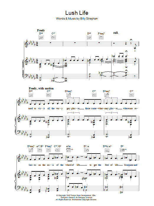 Download or print Billy Strayhorn Lush Life sheet music, chords and digital score arranged for Piano Solo. This Blues score includes 3 page(s).