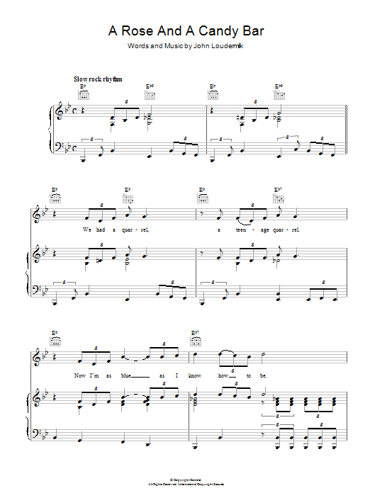 Download or print John D. Loudermilk A Rose And A Candy Bar sheet music, chords and digital score arranged for Piano, Vocal & Guitar Chords. This Pop score includes 4 page(s).