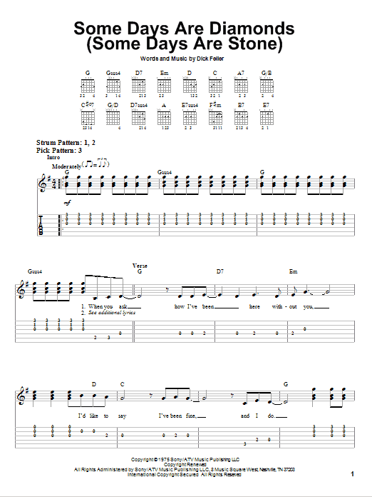 Download or print John Denver Some Days Are Diamonds (Some Days Are Stone) sheet music, chords and digital score arranged for Easy Guitar Tab. This Country score includes 3 page(s).