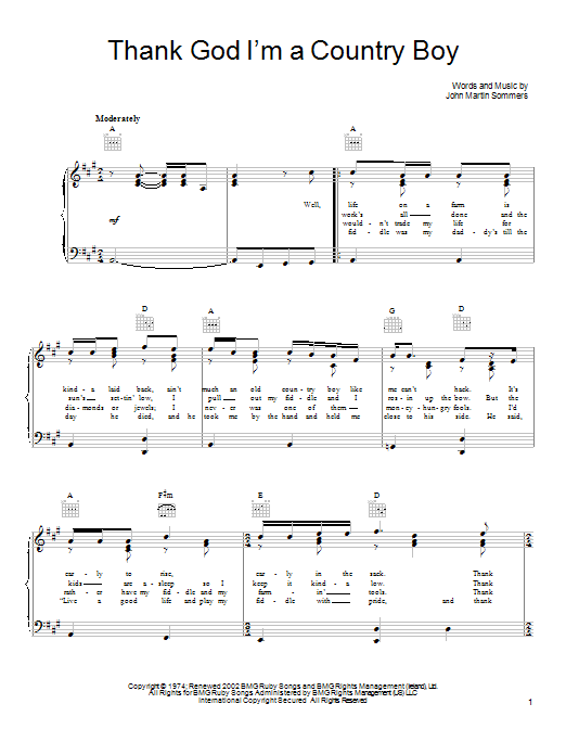 Quick facts Thank God I'm A Country Boy about digital sheet music