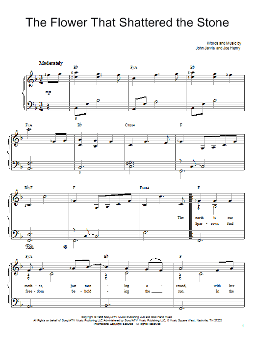 Download or print John Denver The Flower That Shattered The Stone sheet music, chords and digital score arranged for Easy Piano. This Pop score includes 4 page(s).