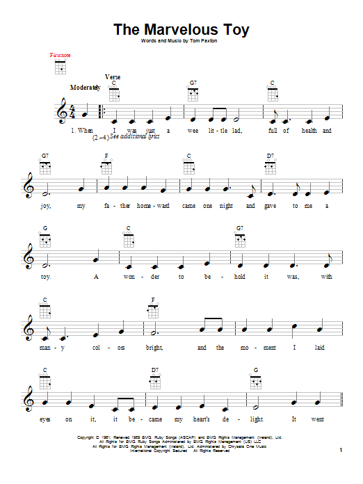 Download or print John Denver The Marvelous Toy sheet music, chords and digital score arranged for Lead Sheet / Fake Book. This Children score includes 2 page(s).