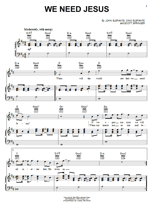 Download or print Petra We Need Jesus sheet music, chords and digital score arranged for Piano, Vocal & Guitar Chords (Right-Hand Melody). This Christian score includes 7 page(s).