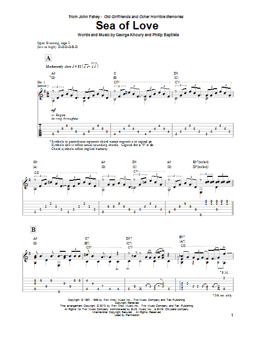 Download or print John Fahey Sea Of Love sheet music, chords and digital score arranged for Solo Guitar. This Love score includes 3 page(s).