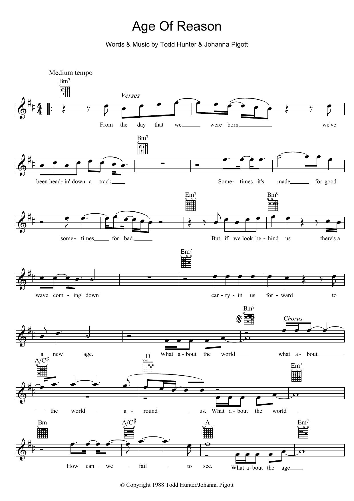 Download or print John Farnham Age Of Reason sheet music, chords and digital score arranged for Lead Sheet / Fake Book. This Pop score includes 2 page(s).