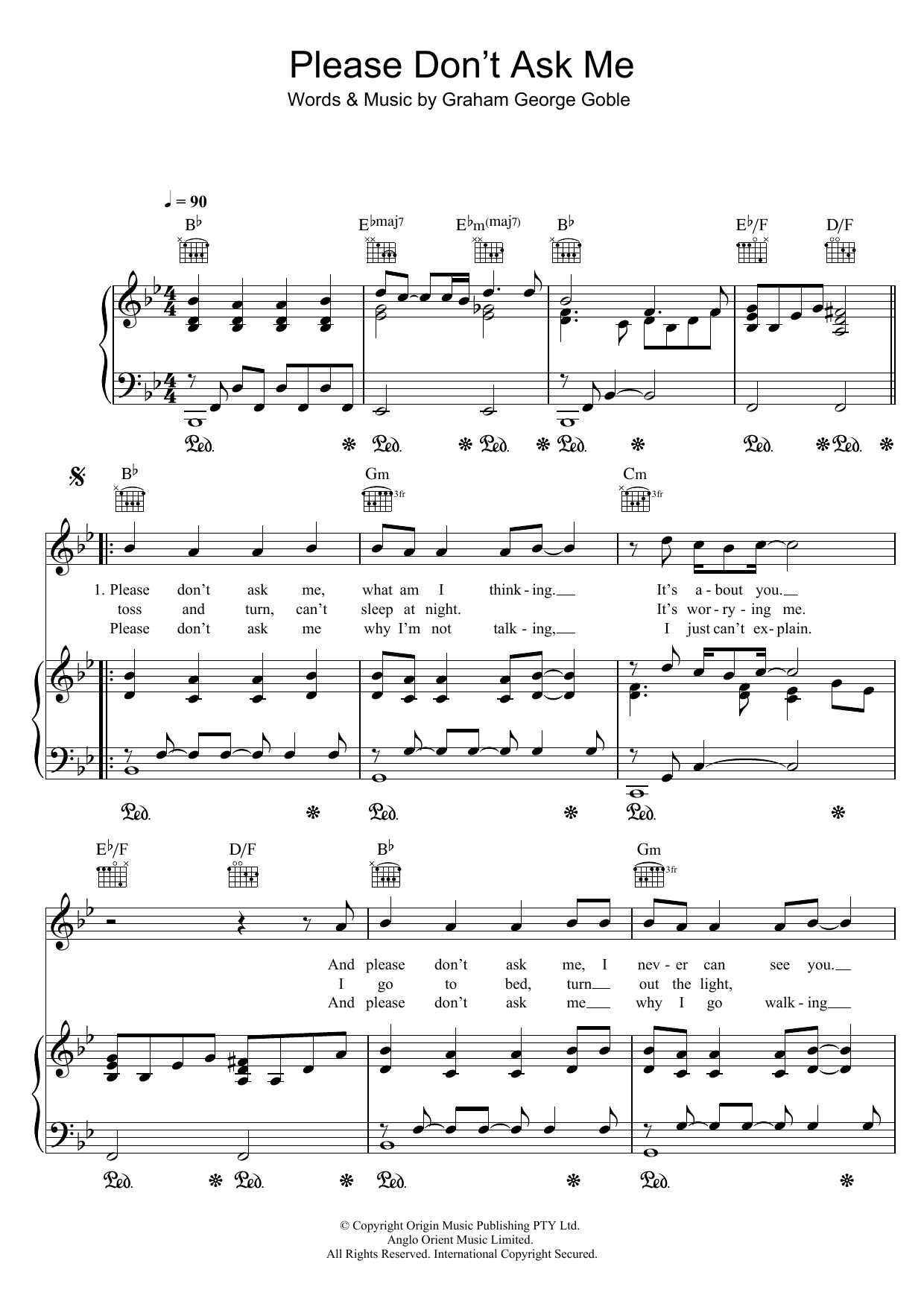 Download or print John Farnham Please Don't Ask Me sheet music, chords and digital score arranged for Piano, Vocal & Guitar Chords. This Love score includes 4 page(s).