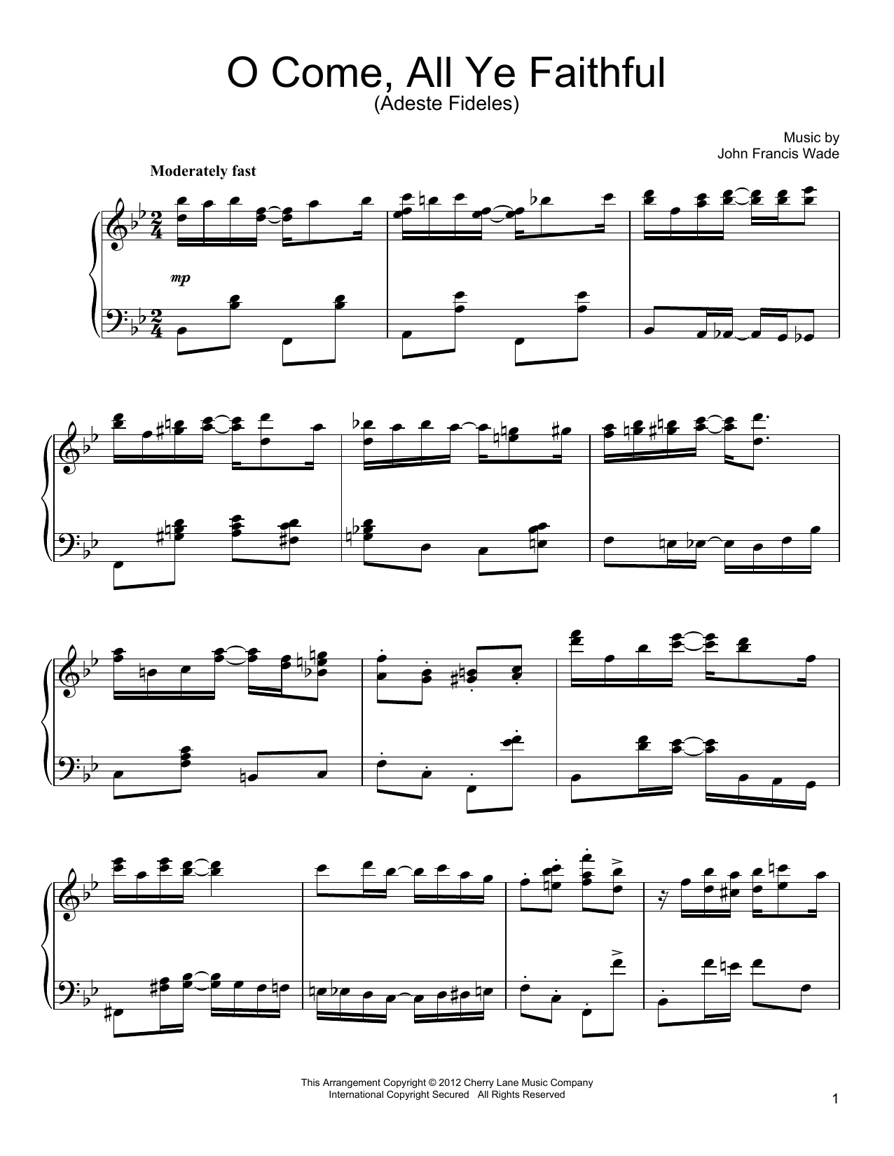 Download or print John Francis Wade O Come, All Ye Faithful (Adeste Fideles) [Ragtime version] sheet music, chords and digital score arranged for Piano Solo. This Christmas score includes 2 page(s).