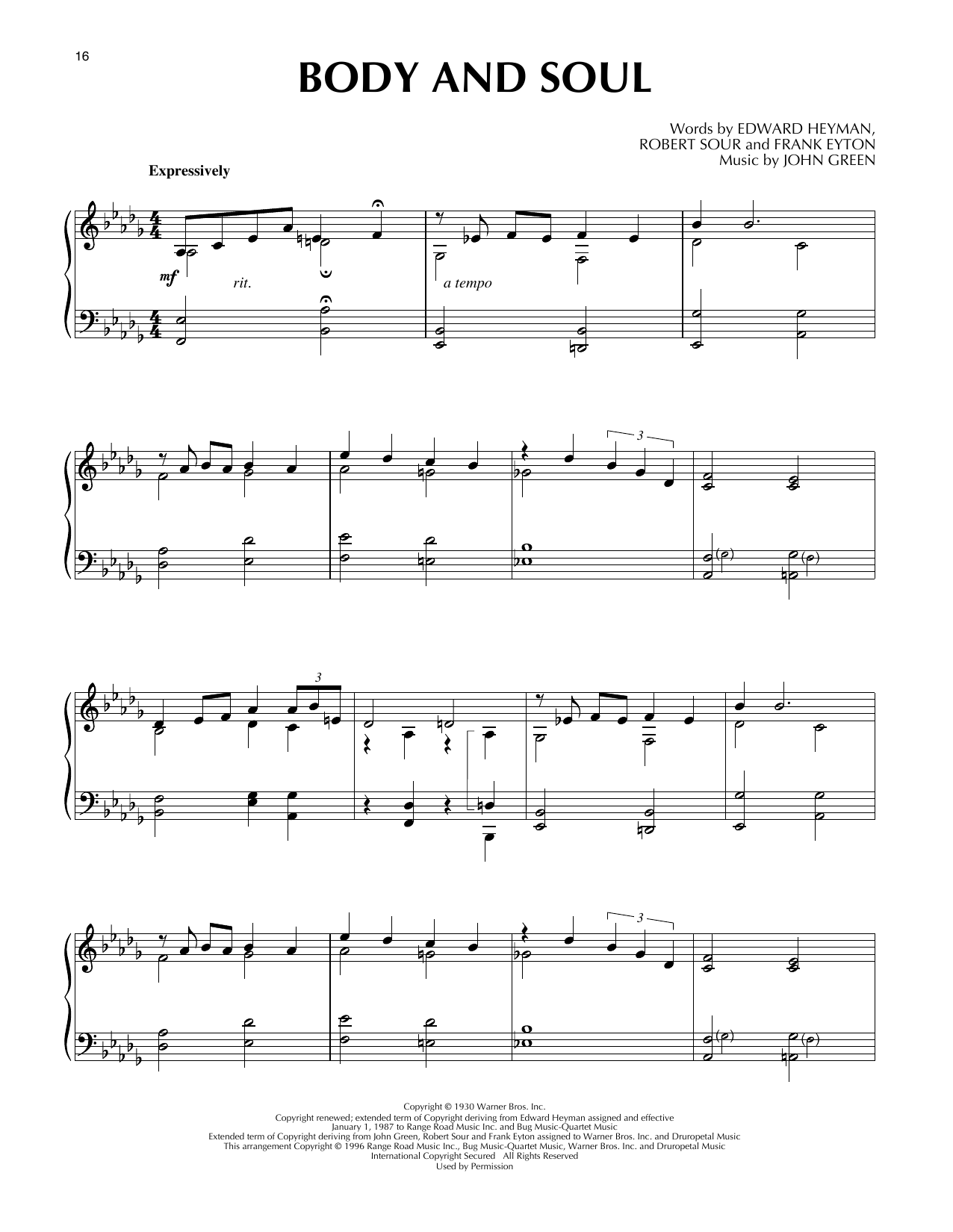 Download or print John Green Body And Soul (arr. Jack Reilly) sheet music, chords and digital score arranged for Piano Solo. This Jazz score includes 2 page(s).