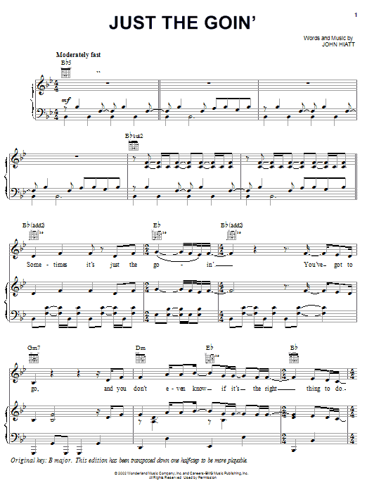 Download or print John Hiatt Just The Goin' sheet music, chords and digital score arranged for Piano, Vocal & Guitar Chords (Right-Hand Melody). This Children score includes 4 page(s).