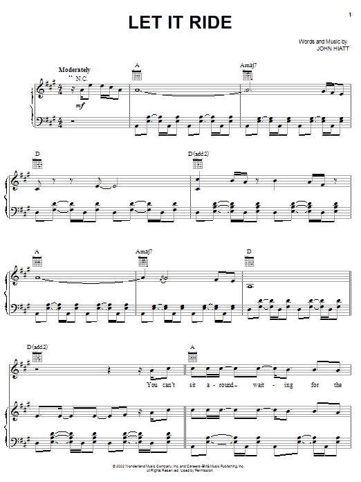 Download or print John Hiatt Let It Ride sheet music, chords and digital score arranged for Piano, Vocal & Guitar Chords (Right-Hand Melody). This Children score includes 8 page(s).