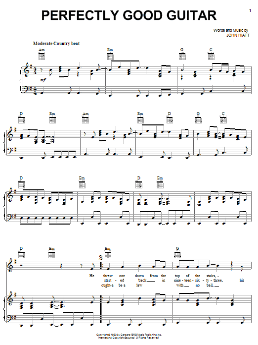 Download or print John Hiatt Perfectly Good Guitar sheet music, chords and digital score arranged for Piano, Vocal & Guitar Chords (Right-Hand Melody). This Blues score includes 6 page(s).