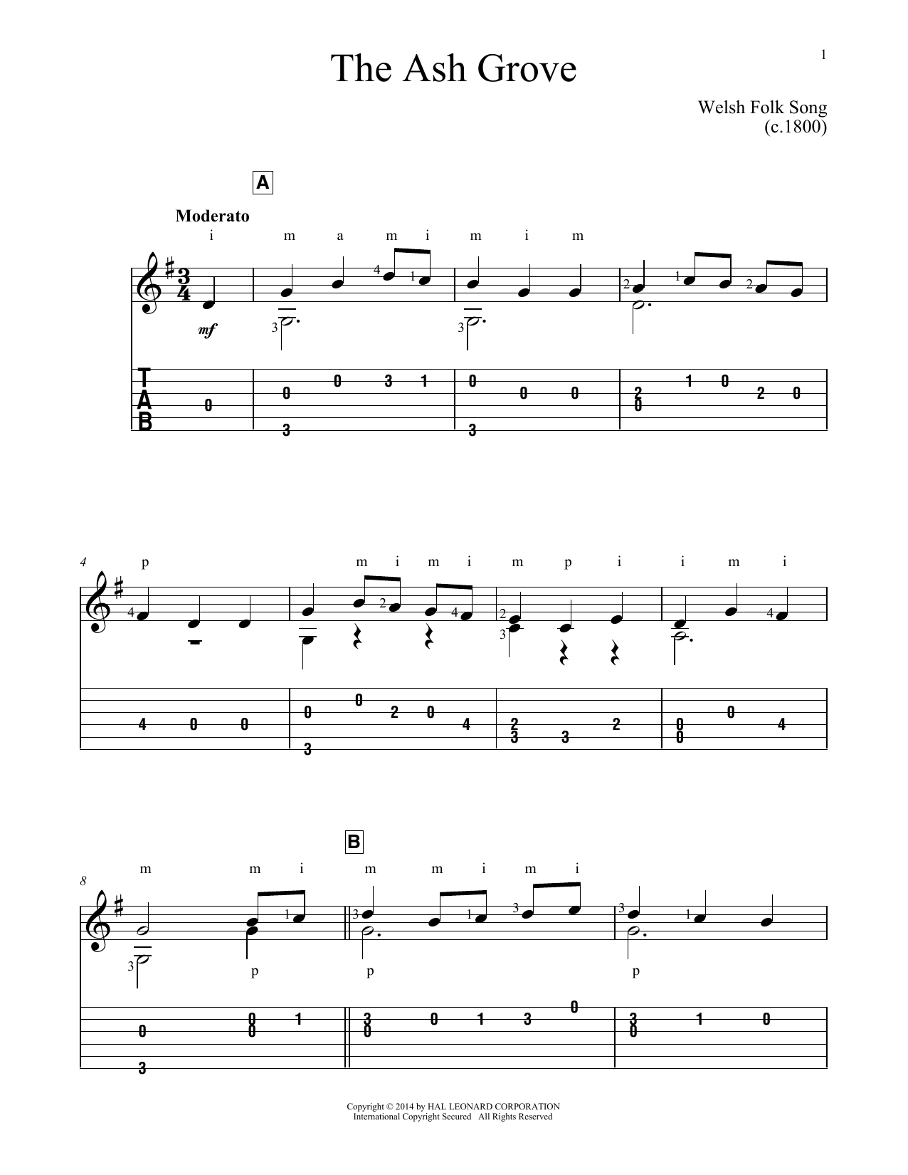 Download or print John Hill The Ash Grove sheet music, chords and digital score arranged for Solo Guitar. This Folk score includes 2 page(s).