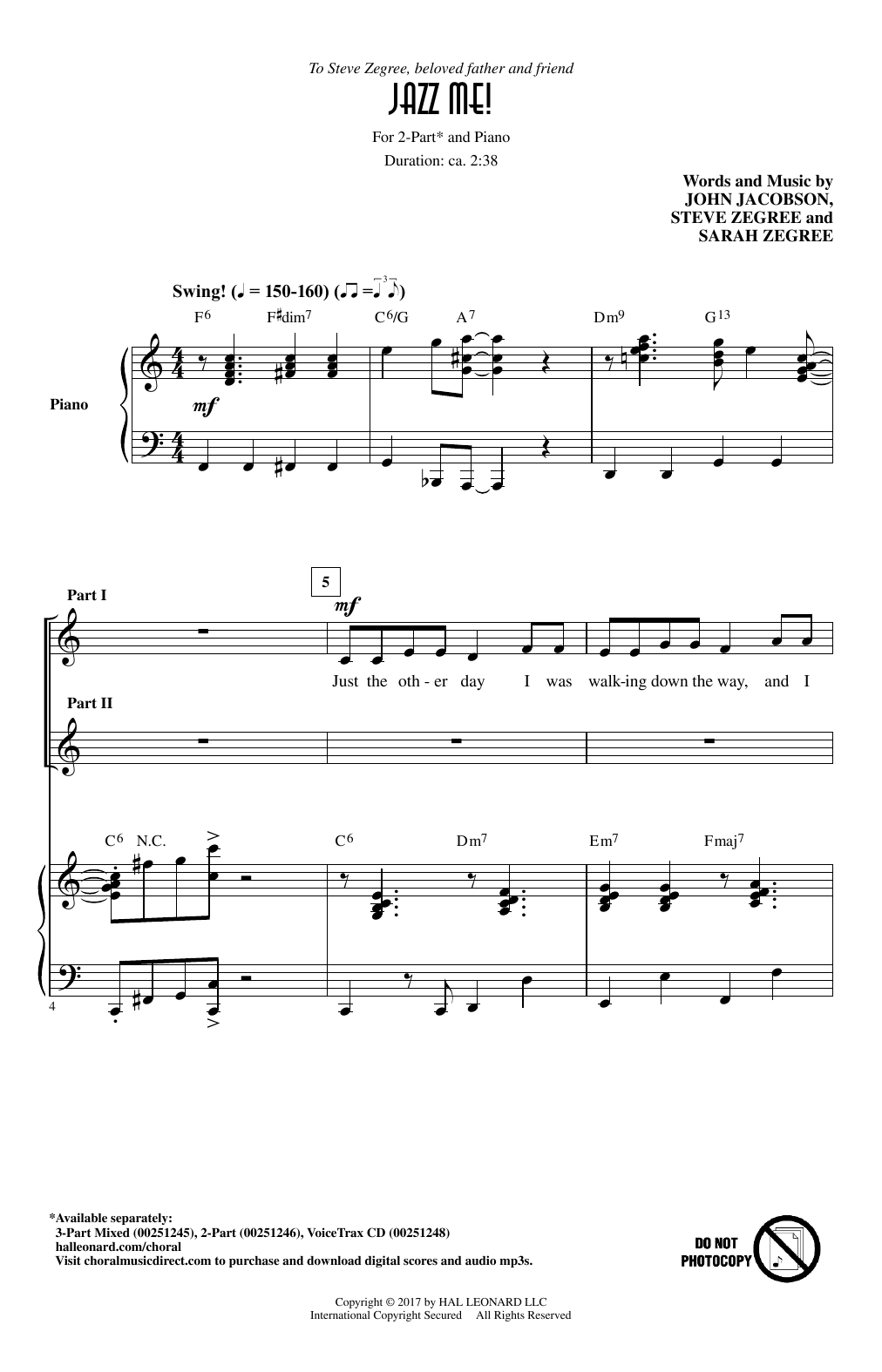 Download or print John Jacobson Jazz Me! sheet music, chords and digital score arranged for 3-Part Mixed Choir. This Jazz score includes 18 page(s).