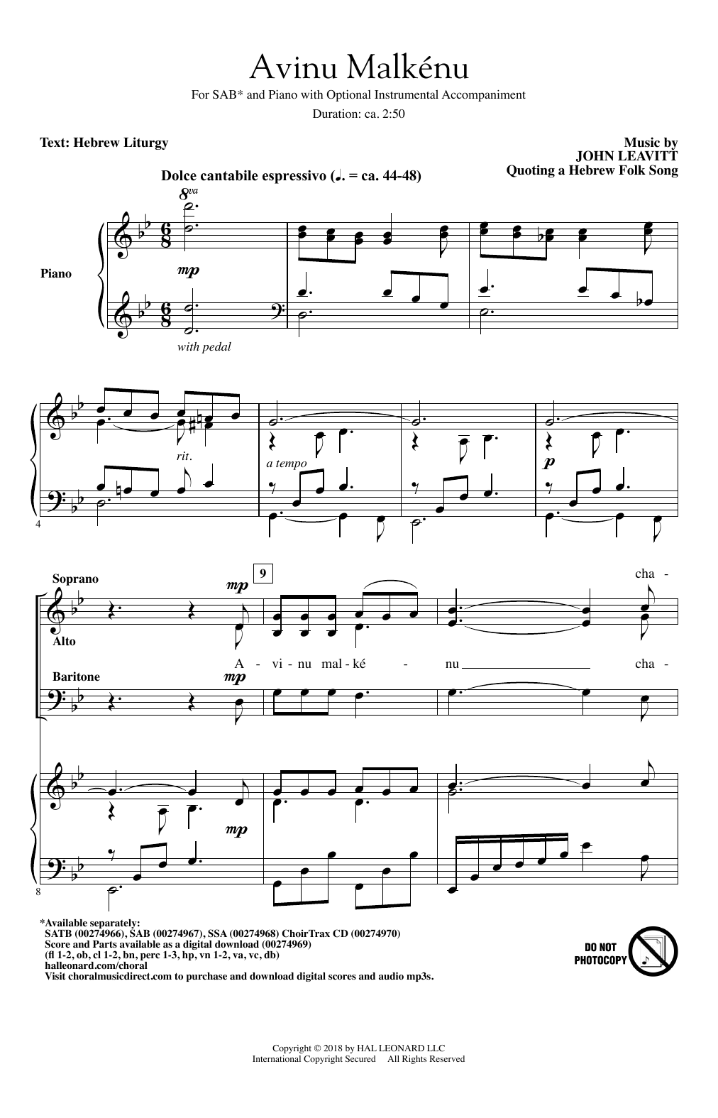 Download or print John Leavitt Avinu Malkenu sheet music, chords and digital score arranged for SSA Choir. This Concert score includes 7 page(s).