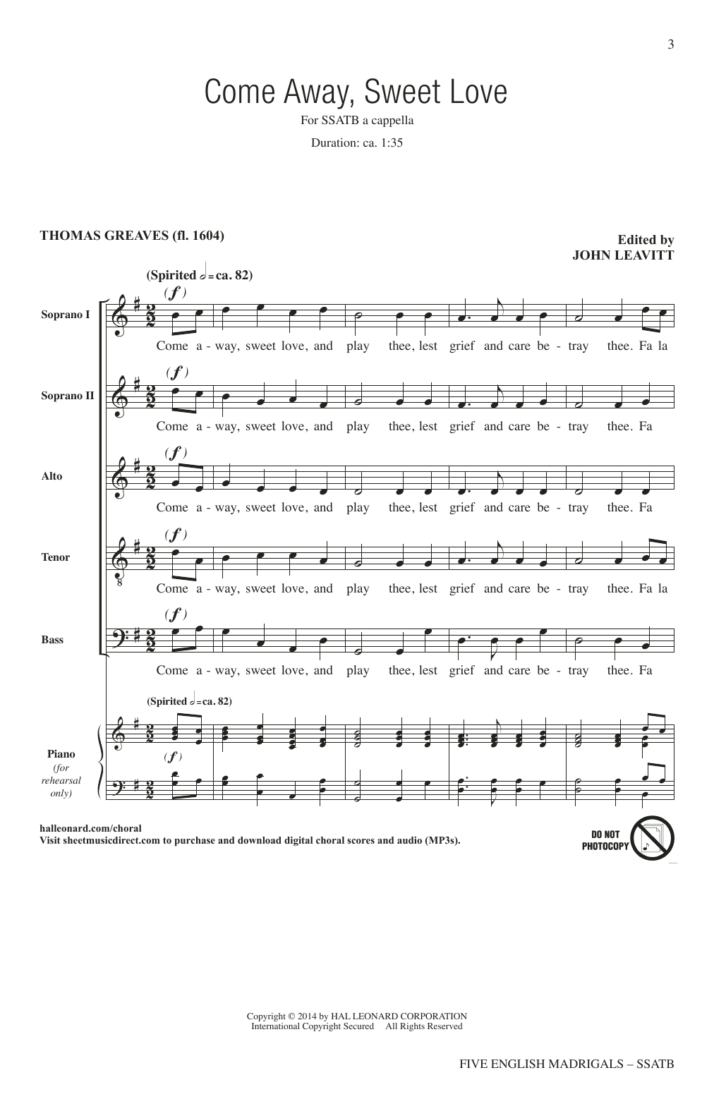 Download or print John Leavitt Five English Madrigals sheet music, chords and digital score arranged for SSATB Choir. This Concert score includes 32 page(s).