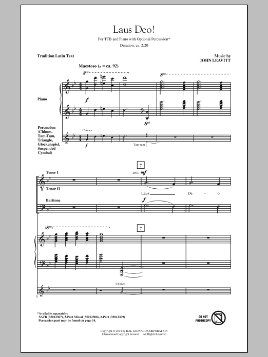 Download or print John Leavitt Laus Deo! sheet music, chords and digital score arranged for SSA Choir. This Concert score includes 13 page(s).
