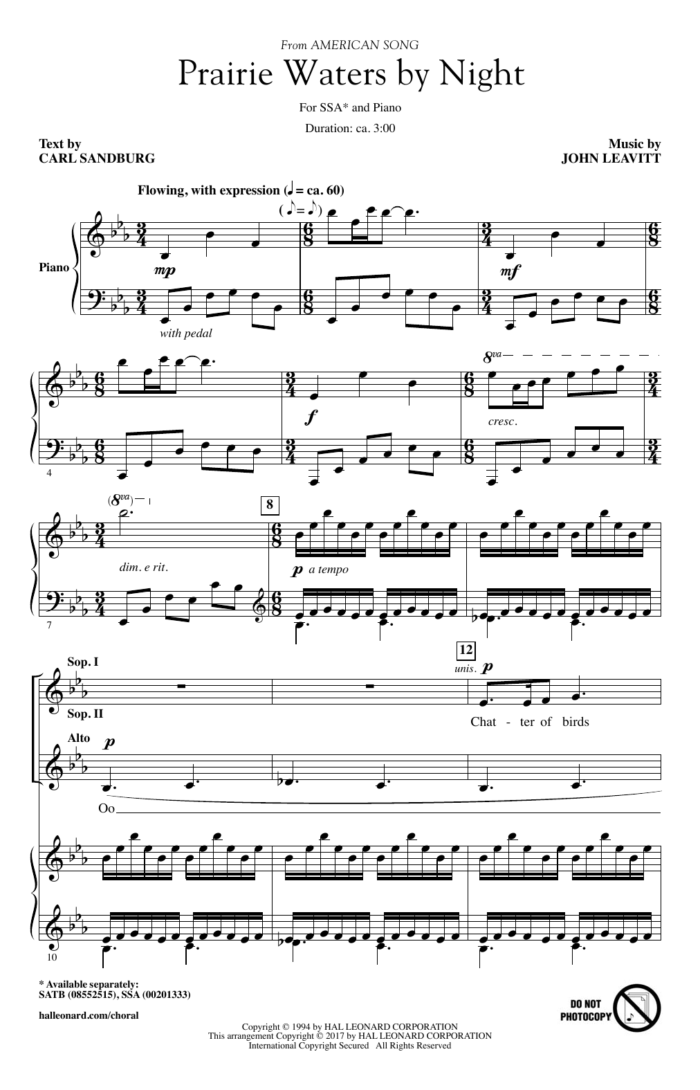 Download or print John Leavitt Prairie Waters By Night sheet music, chords and digital score arranged for SSA Choir. This American score includes 7 page(s).