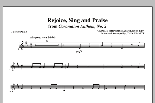 Download or print John Leavitt Rejoice, Sing And Praise - C Trumpet 3 sheet music, chords and digital score arranged for Choir Instrumental Pak. This Concert score includes 1 page(s).