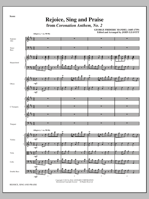 Download or print John Leavitt Rejoice, Sing And Praise - Full Score sheet music, chords and digital score arranged for Choir Instrumental Pak. This Concert score includes 13 page(s).