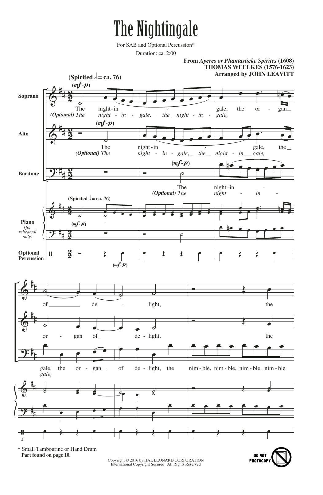 Download or print John Leavitt The Nightingale, The Organ Of Delight sheet music, chords and digital score arranged for SAB Choir. This Concert score includes 10 page(s).