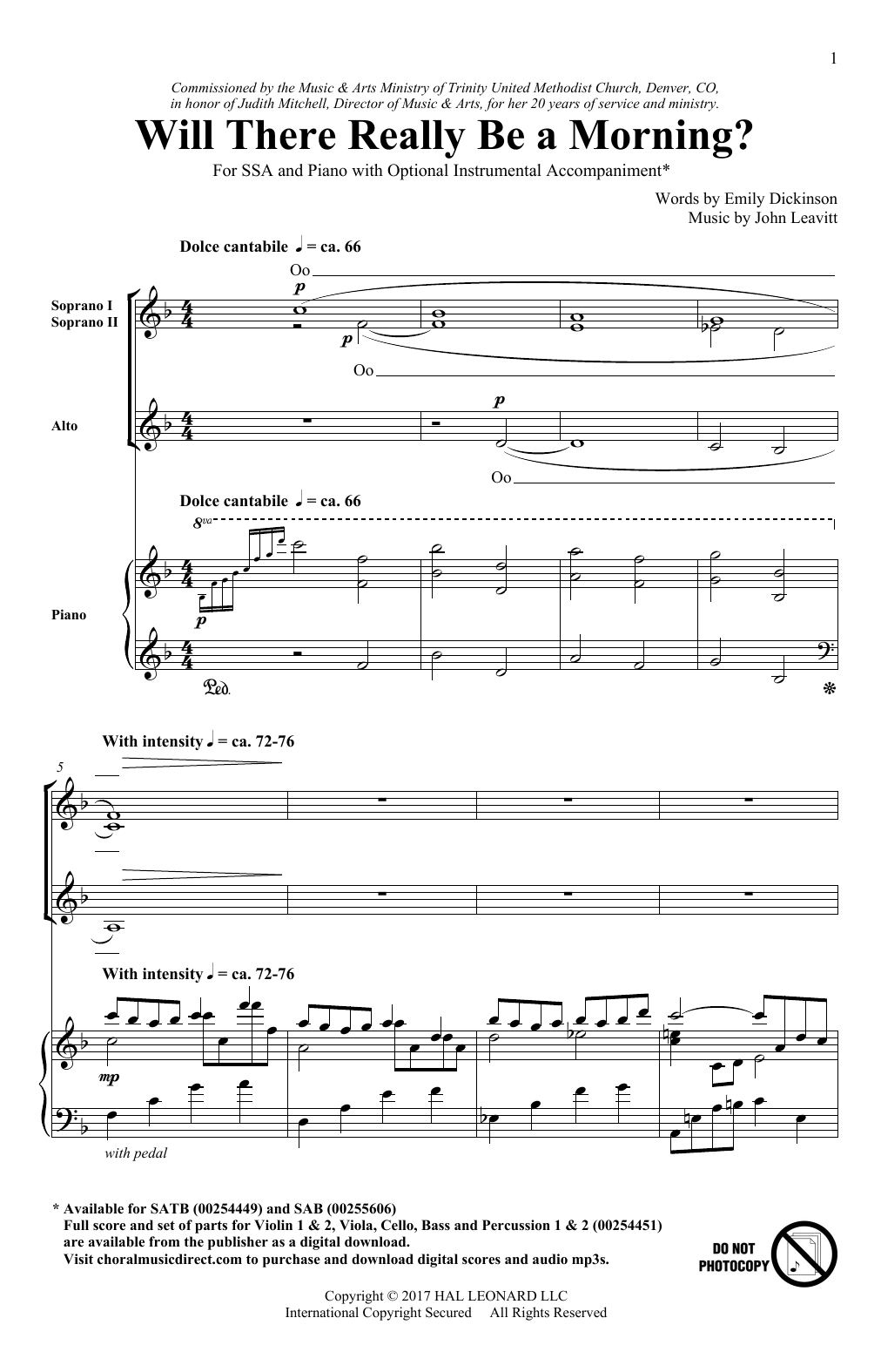 Download or print John Leavitt Will There Really Be A Morning? sheet music, chords and digital score arranged for SATB Choir. This Concert score includes 8 page(s).