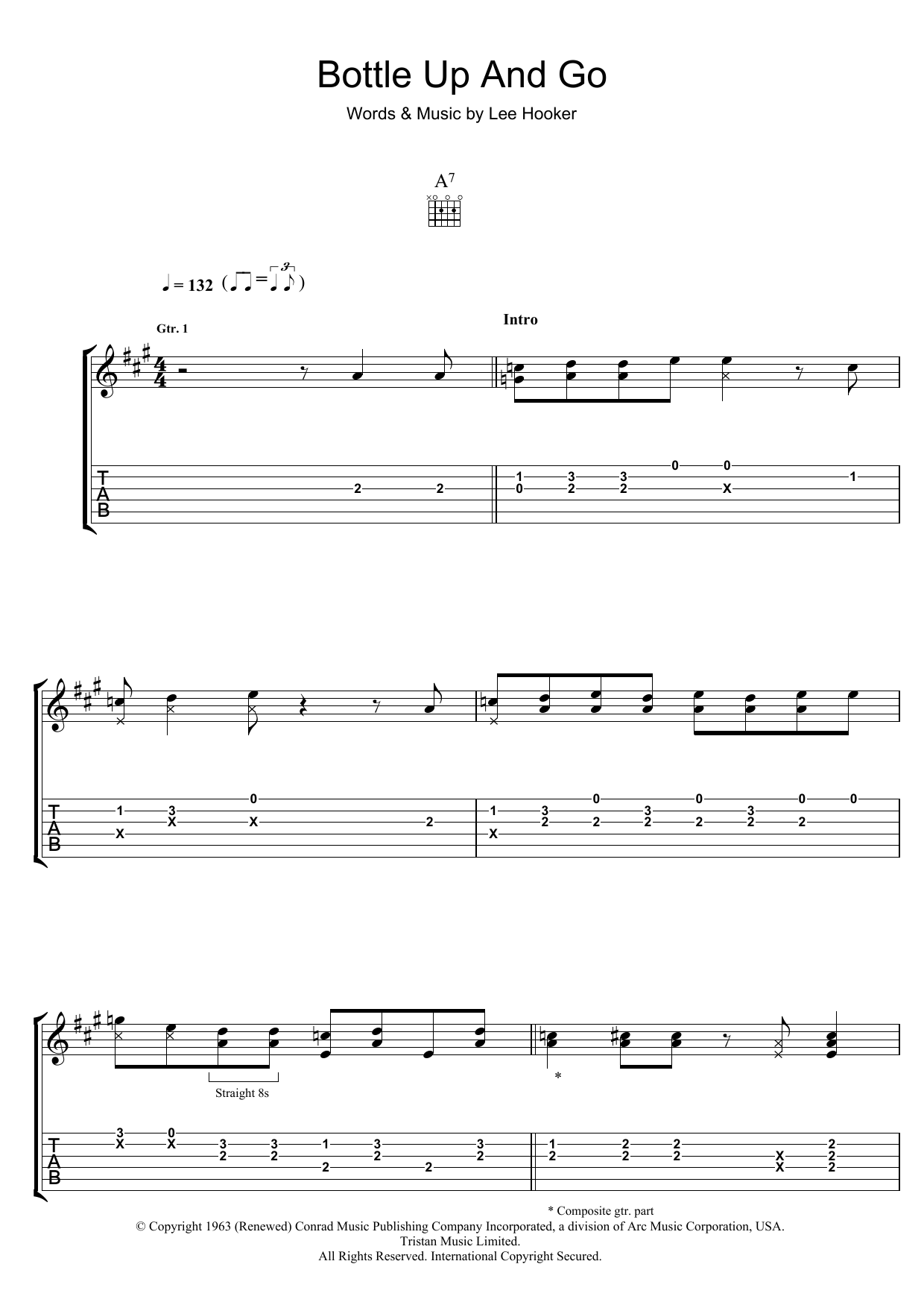 Download or print John Lee Hooker Bottle Up And Go sheet music, chords and digital score arranged for Guitar Tab. This Blues score includes 6 page(s).