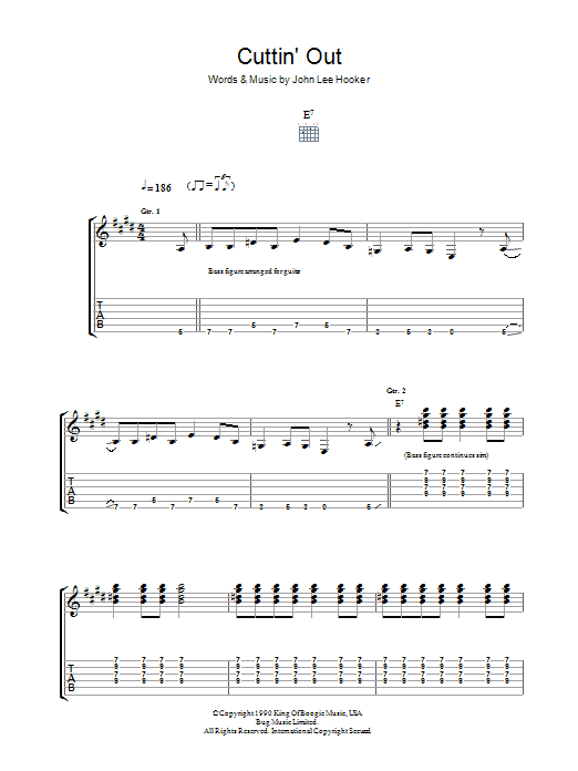 Download or print John Lee Hooker Cuttin' Out sheet music, chords and digital score arranged for Guitar Tab. This Blues score includes 6 page(s).