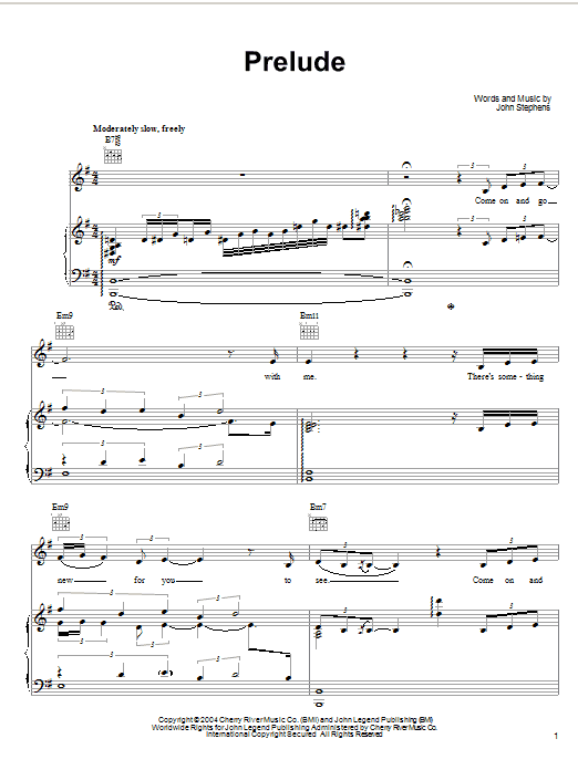 Download or print John Legend Prelude sheet music, chords and digital score arranged for Piano, Vocal & Guitar Chords (Right-Hand Melody). This Pop score includes 2 page(s).