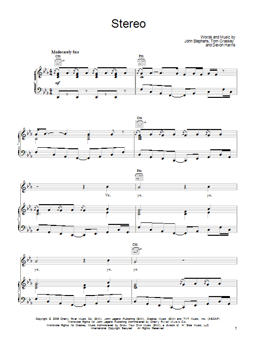Download or print John Legend Stereo sheet music, chords and digital score arranged for Piano, Vocal & Guitar Chords (Right-Hand Melody). This Pop score includes 7 page(s).
