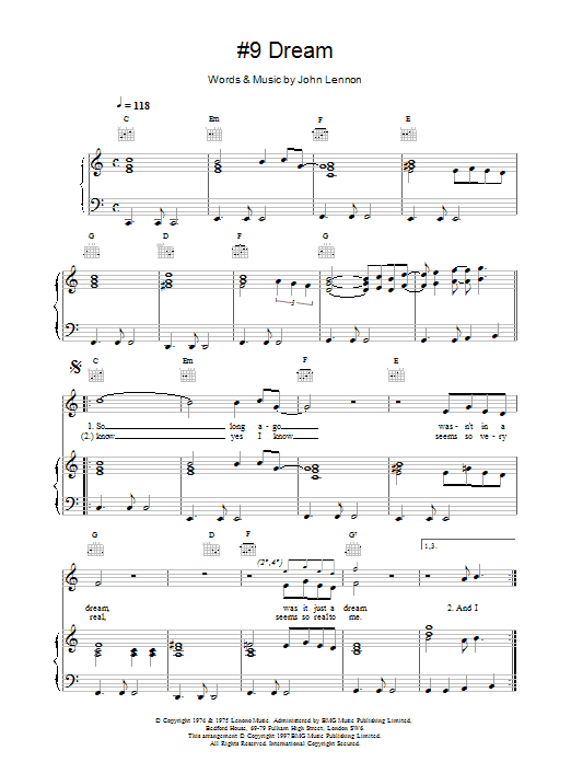 Download or print John Lennon #9 Dream sheet music, chords and digital score arranged for Guitar Chords/Lyrics. This Rock score includes 3 page(s).
