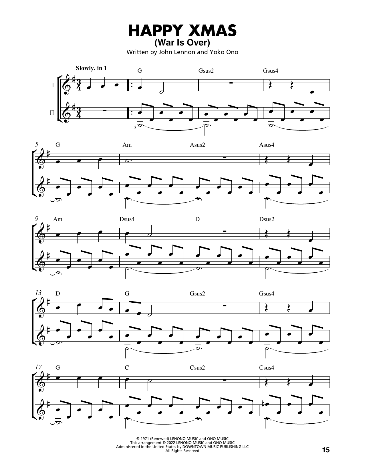 Download or print John Lennon Happy Xmas (War Is Over) (arr. Mark Phillips) sheet music, chords and digital score arranged for Easy Guitar Tab. This Christmas score includes 3 page(s).